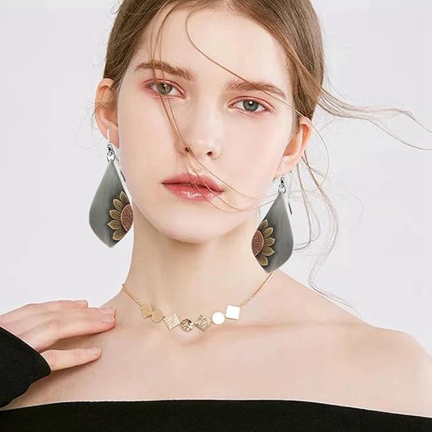 12 pairs of bohemian vintage geometric round earrings wood leather earrings ethnic style vintage sunflower earrings for women and girls Christmas earrings, silver, zinc wood, no gemstones