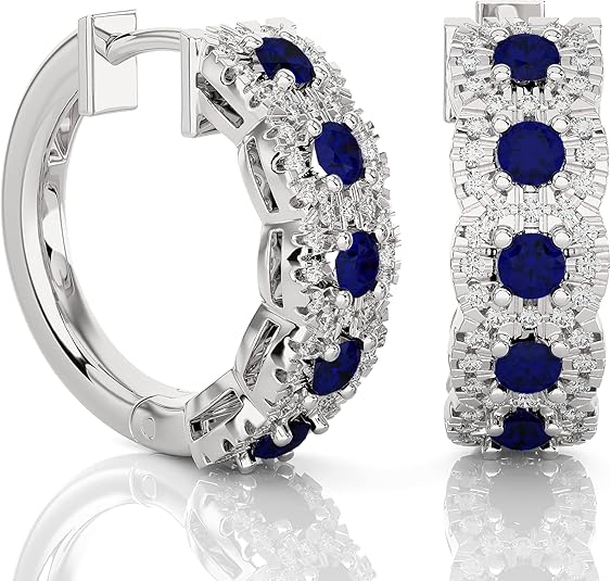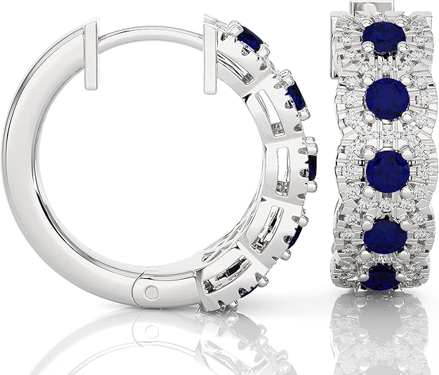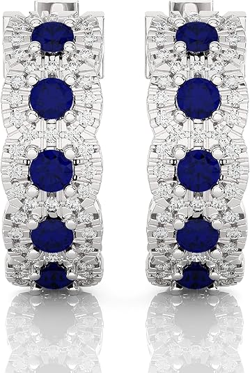 3/8 carat diamond and gemstone hoop earrings for women in 14k yellow gold (H-I, SI2-I1, cttw) with hinges and notched posts