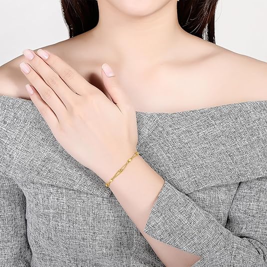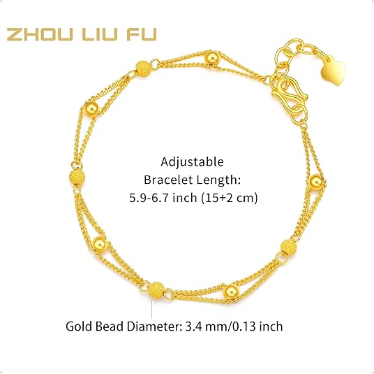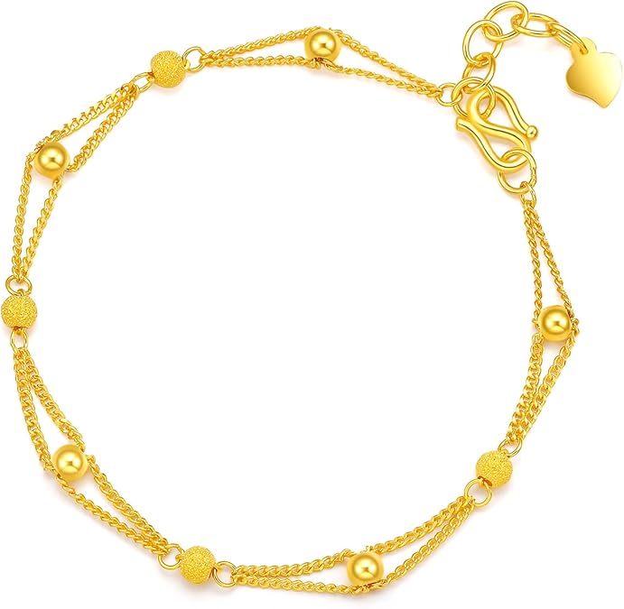 999 24K Pure Gold Bracelet for Women Real Gold Simple Jewelry Gold Beads Gold Chain Bracelet for Men Girlfriend Boyfriend Couple Gift