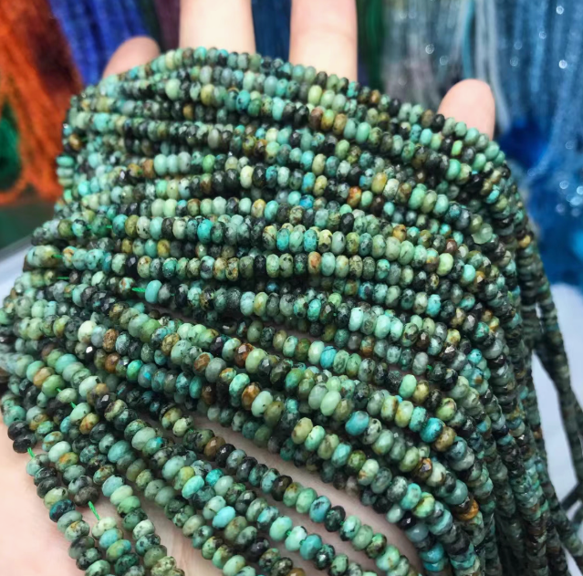 Natural raw African turquoise diamond cut plate flat beads semi-finished DIY loose beads accessories jewelry with beads